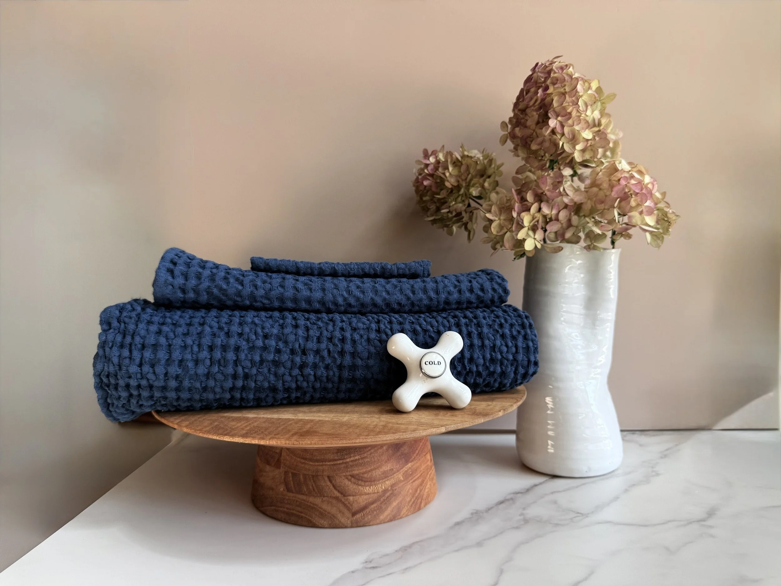 Our waffle linen towels are back in stock, and they are the perfect balance of cozy and practical. The waffle weave gives them extra surface area for absorbency while keeping them lightweight and quick to dry. They are just as suited to a calming morning routine as they are to a refreshing evening unwind.